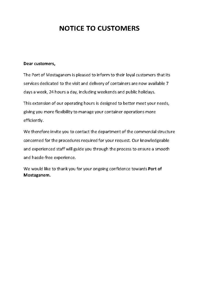 NOTICE TO CUSTOMERS